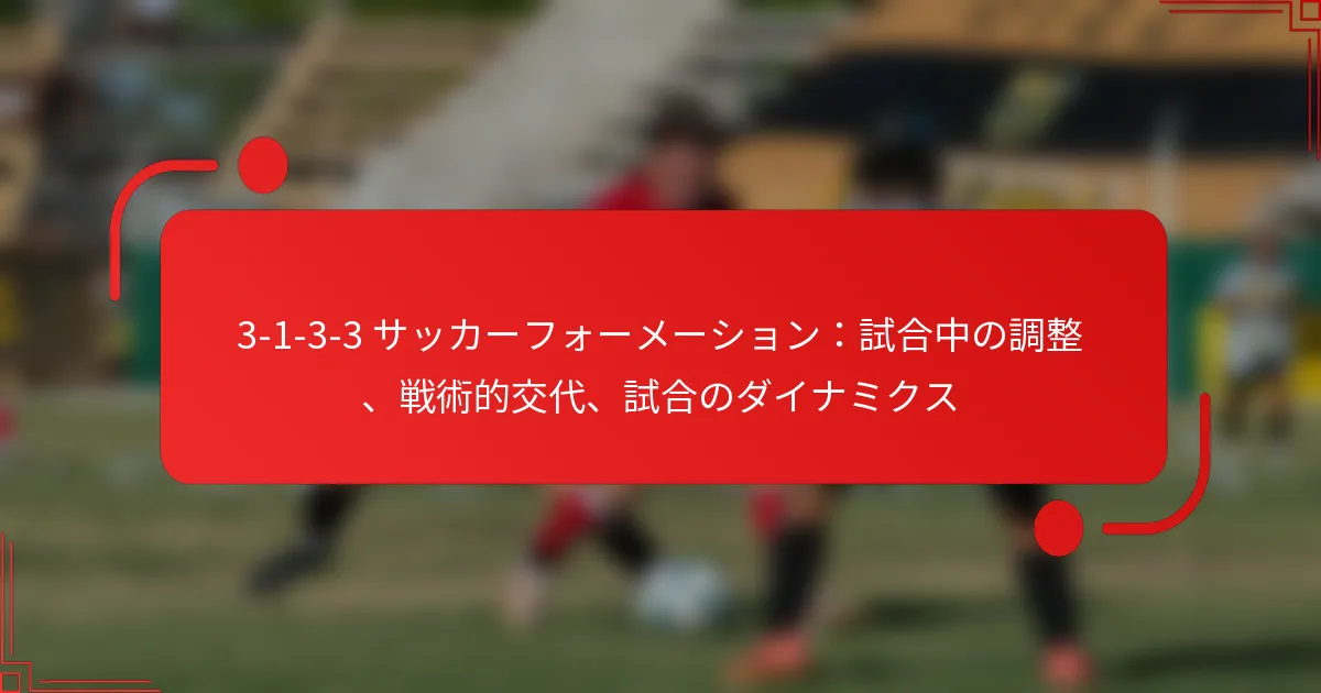3-1-3-3サッカーフォーメーションは、強力な中盤の存在を重視しながら、堅固な守備ラインを維持する戦術的なセットアップです。試合中の調整や効果的な戦術的交代は、チームのパフォーマンスを最適化し、試合の流れに適応するために不可欠です。選手の役割やポジショニングを戦略的に変更することで、チームは相手の戦術に対応し、成功の可能性を高めることができます。