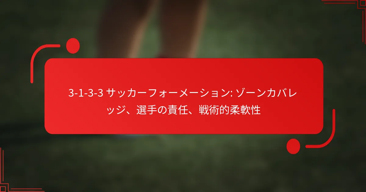 3-1-3-3フォーメーションにおけるゾーンカバレッジは、選手が個々の相手をマークするのではなく、特定のエリアを守ることを含みます。このアプローチは、チームの調整を改善し、守備の堅実さを維持しつつカウンターアタックのオプションを提供します。